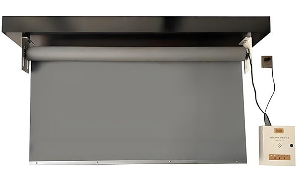 连接电源线和控制线,将靖边挡烟垂壁安装在支架上,并用螺丝固定。